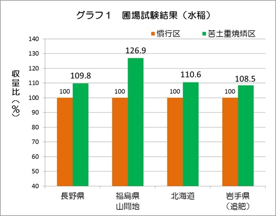 下のグラフ1は長野県、福島県、北海道、岩手県において関係機関並びに生産者様のご協力のもと圃場試験を行った結果です。